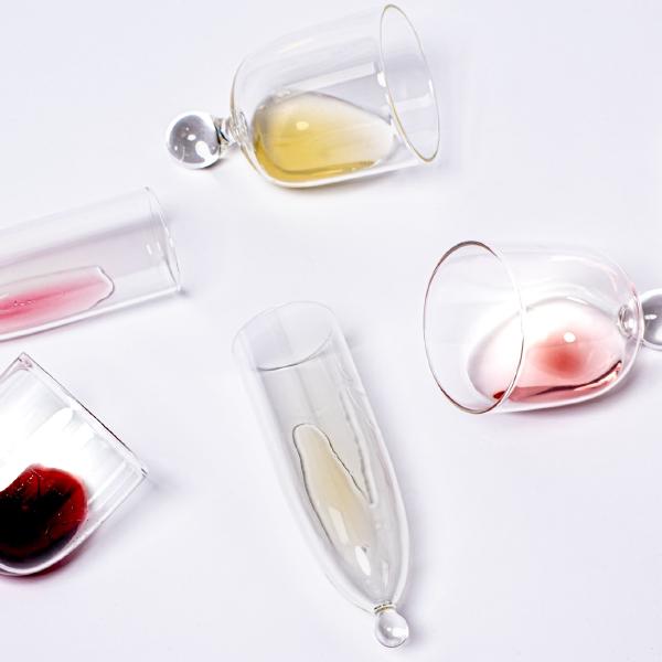 Navázali jsme na předchozí spolupráci se studentkou Terezou Halamovou a podíleli se na jejím novém klauzurním projektu s názvem „Rovnováha“. Ve spolupráci s námi vznikly ručně vyráběné sklenice na víno a sekt z borosilikátového skla, které záměrně popírají klasickou stabilitu. Tradiční nožička je nahrazena skleněnou kuličkou – sklenice sama nestojí a hledá svůj bod vyvážení. Stabilitu jí dodává až obal, který je zároveň podstavou a nedílnou součástí produktu. Vznikla tak série, která bere v potaz případnou sériovou výrobu. Projekt opět propojuje řemeslnou preciznost s výraznou designovou myšlenkou.