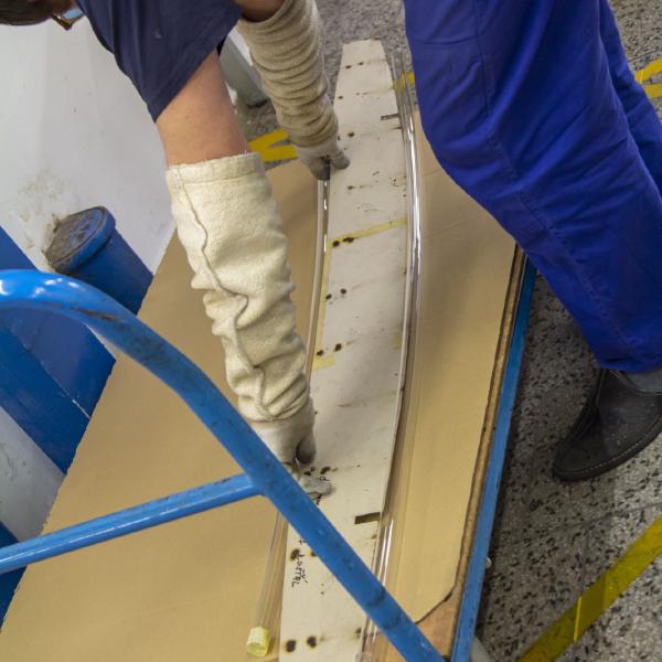 The object, featuring a slightly curved light tube as a key expressive element, was a successful culmination of the collaboration between the author and the implementation team.